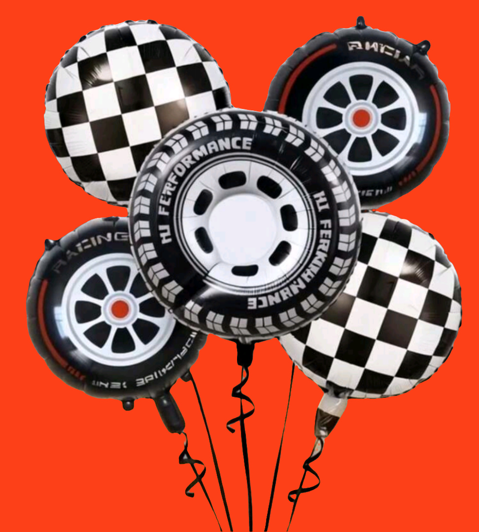 Five beautiful 18 inch long floating Balloons for the Racing sport fan.